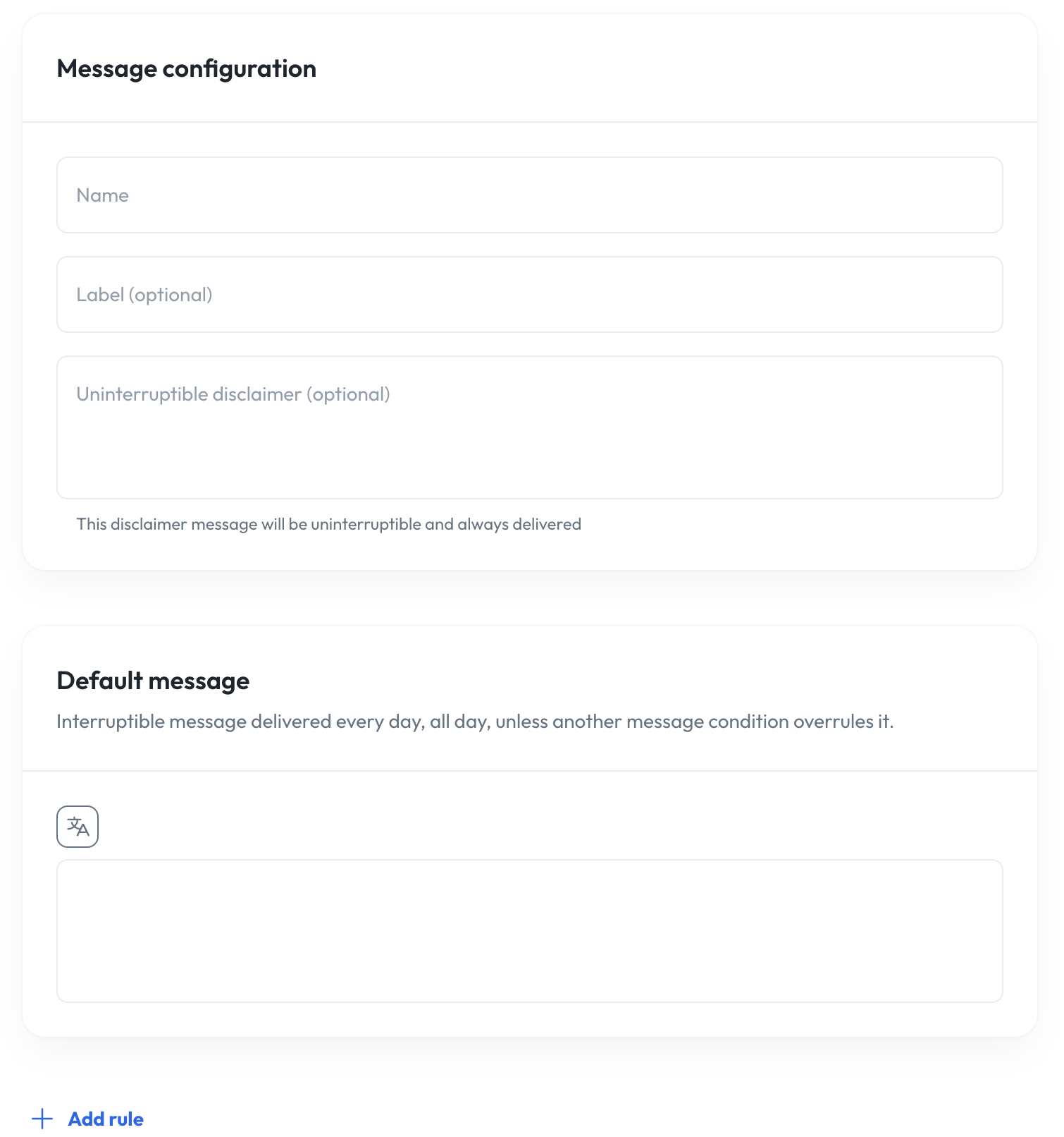 - Uninterruptible disclaimer (optional): Preamble in message that will always be delivered, if set, and cannot be interrupted, making these useful for any required disclaimers.